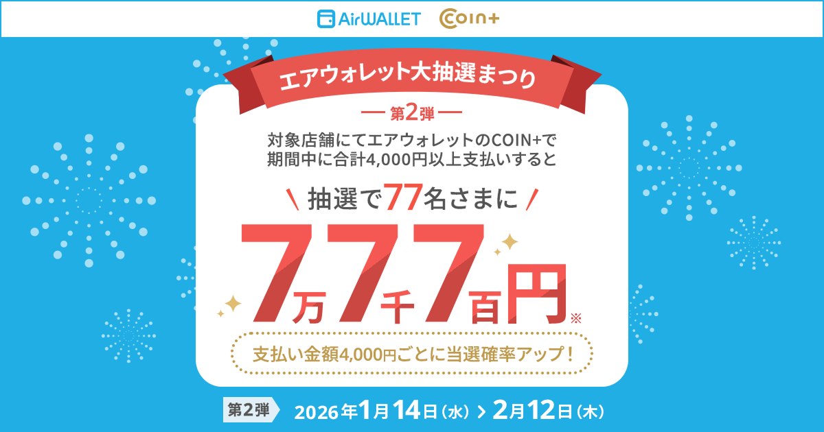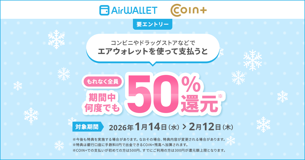 エアウォレット内の「COIN+」を使えば、現金を持ち歩かずにスマホでさっと支払いができます。さらに、キャンペーンを利用するとポイントが貯まって、もっとお得に買い物ができます。